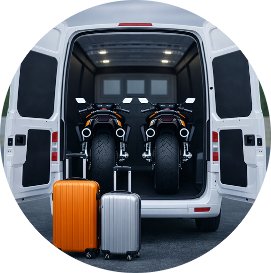 Si quieres disfrutar de tu viaje sin sumar kilómetros innecesarios, desgaste de neumáticos o largas horas de carretera, nos encargamos de llevar tu moto de forma segura, cómoda y puntual hasta tu destino y traerla de vuelta cuando termine tu ruta. El transporte se realiza en vehículos cerrados, exclusivos para motocicletas, equipados con rampas profesionales y sistemas de trincaje específicos, garantizando la máxima protección durante todo el trayecto.